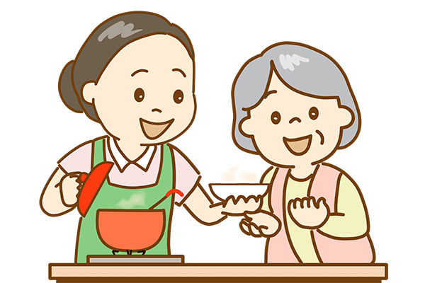 | 家事援助 | 掃除・洗濯・調理・ゴミ出し・買い物など、 快適な生活環境づくり |
